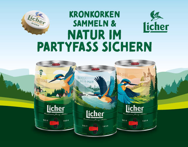 Um an der Sammelaktion für eines von 10.000 Licher Pilsner 5L-Partyfässern im Natur-Design teilzunehmen, müssen 120 Original-Kronkorken der Marke Licher gesammelt werden. Die Anzahl der Sammelprämien ist auf 10.000 Stück beschränkt. Die aktuell verfügbare Anzahl Licher Pilsner 5L-Partyfässer ist auf www.licher.de/sammeln ersichtlich.